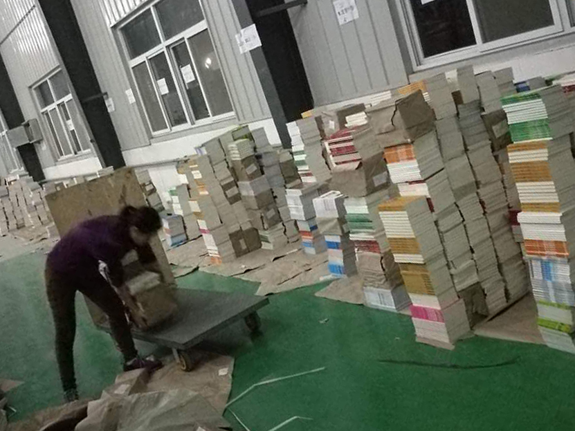 成包的圖書(shū)被整齊的碼放在校方指定的位置上