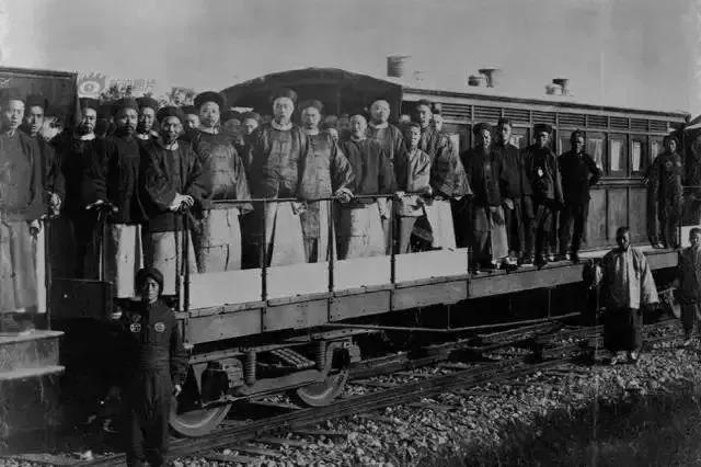 1881年,開(kāi)平礦局修建的中國(guó)第一條準(zhǔn)軌鐵路——唐胥鐵路通車后,清直隸總督李鴻章率幕僚乘車視察。