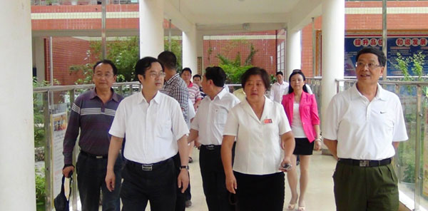 圖為肖會(huì)長、齊秘書等領(lǐng)導(dǎo)、嘉賓在四小校長引領(lǐng)下前往圖書室參觀
