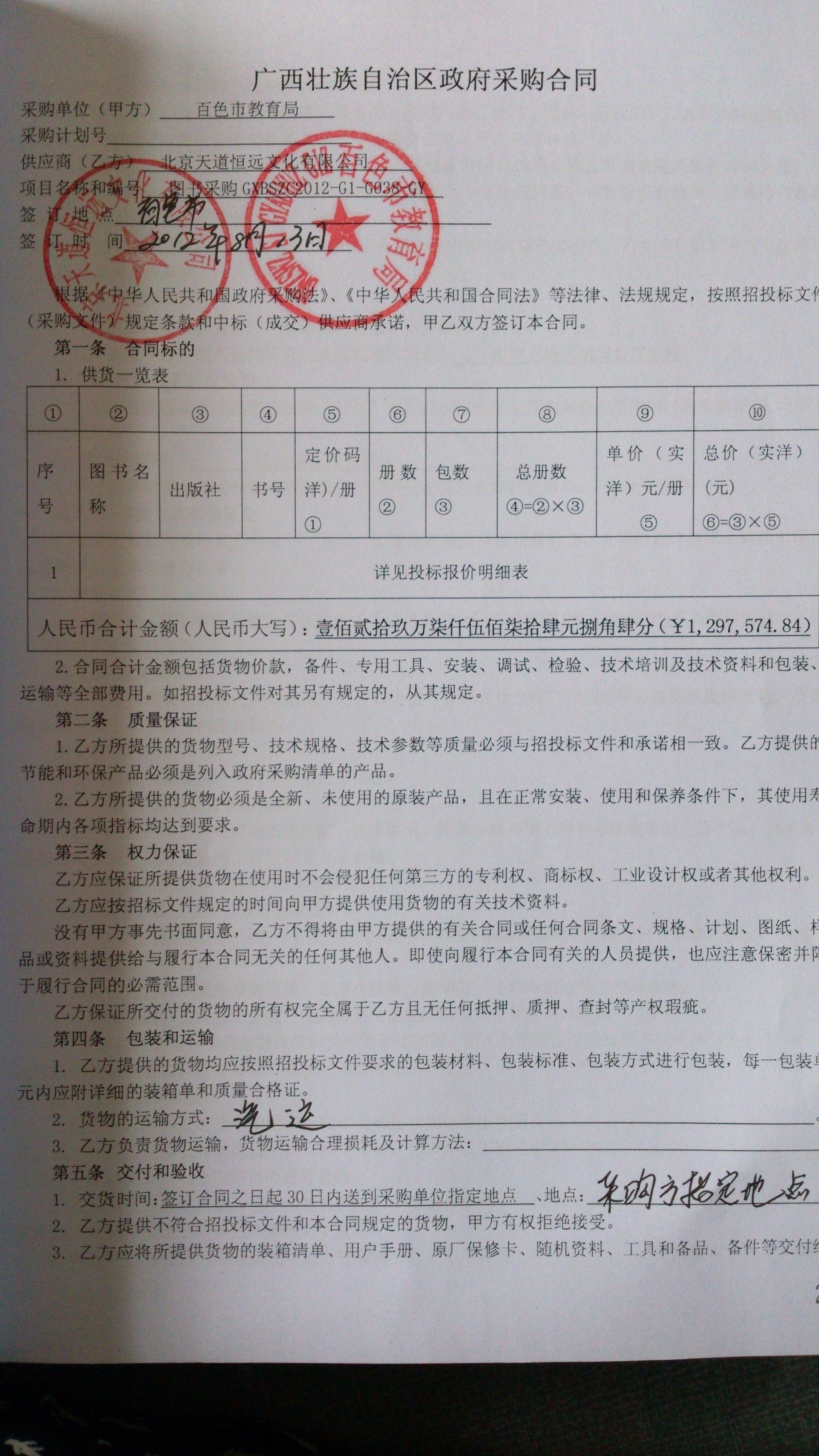 甲方(采購人):百色是教育局
