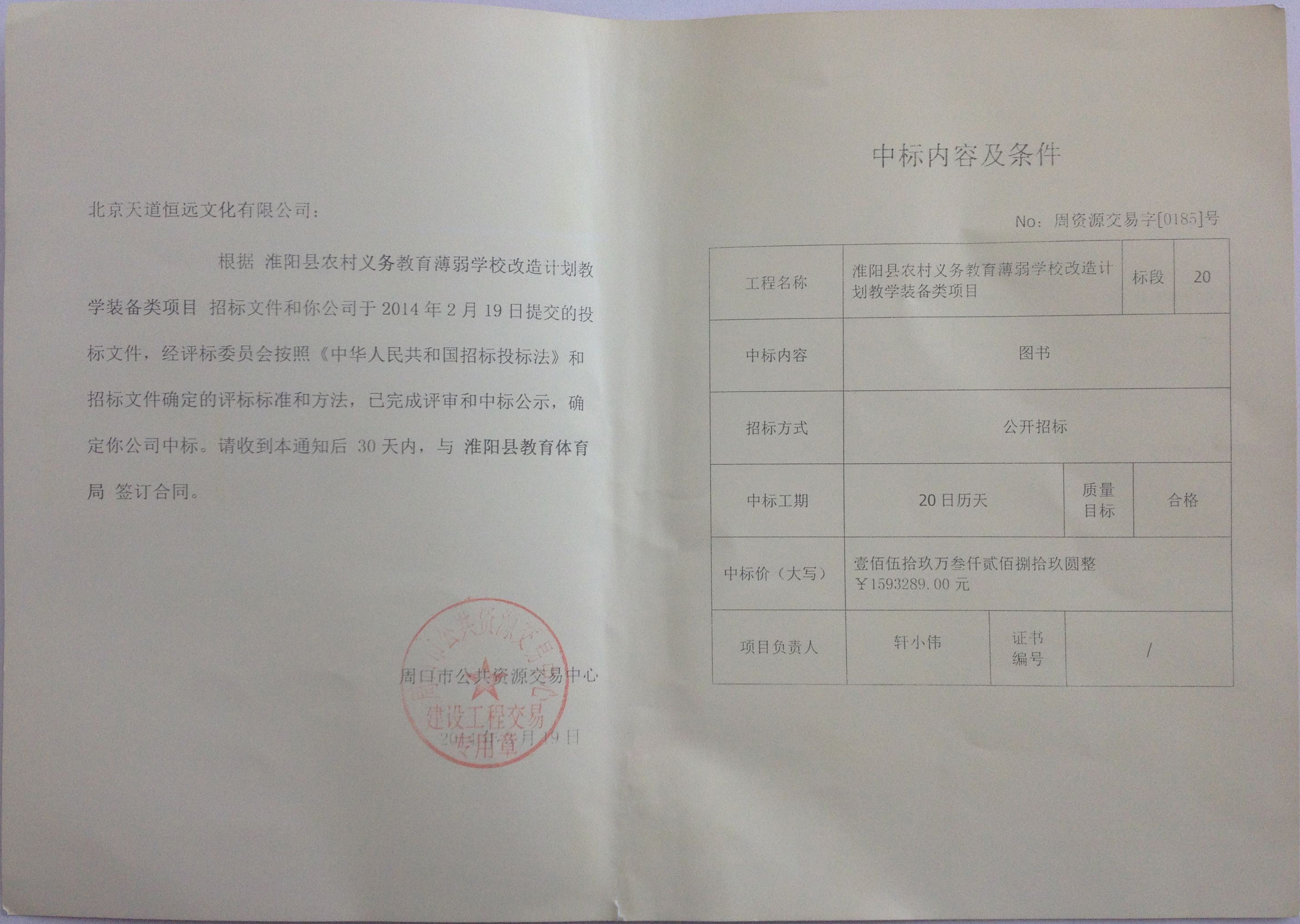 項目名稱:淮陽縣農(nóng)村義務(wù)薄弱學(xué)校改造計劃教學(xué)實驗儀器設(shè)備、圖書項目(第二十標(biāo)段:圖書)