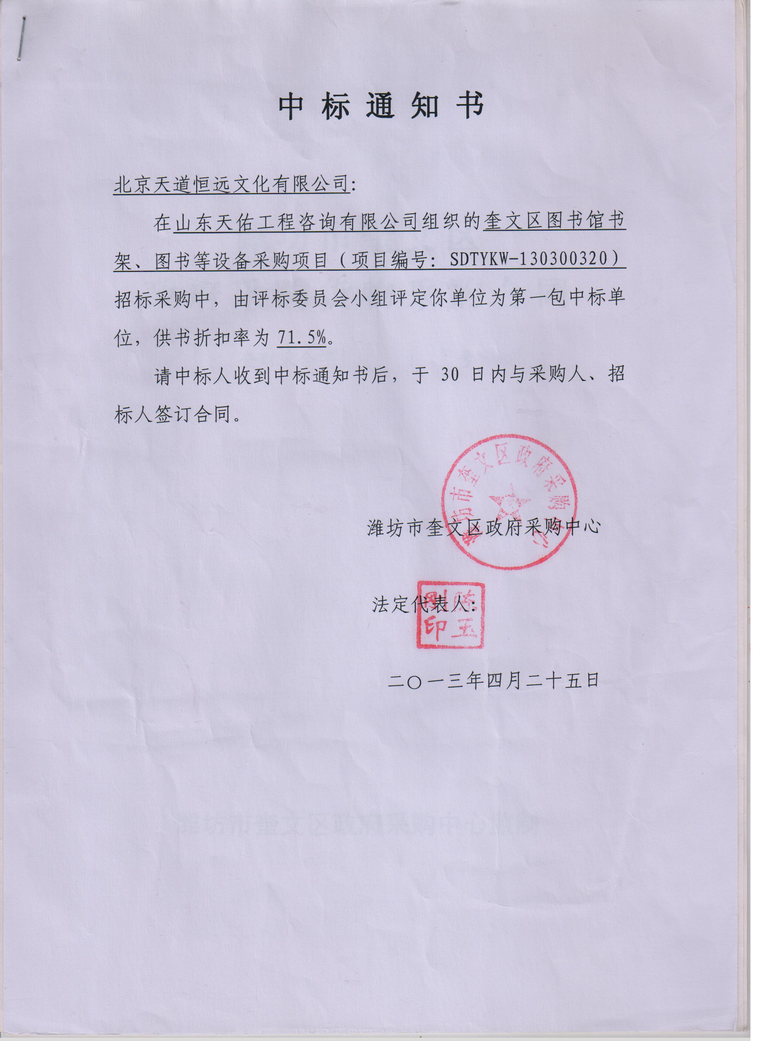 當(dāng)前位置:首頁 » 資訊中心 » 圖書投標案例 » 奎文區(qū)圖書館書架、圖書等設(shè)備采購項目