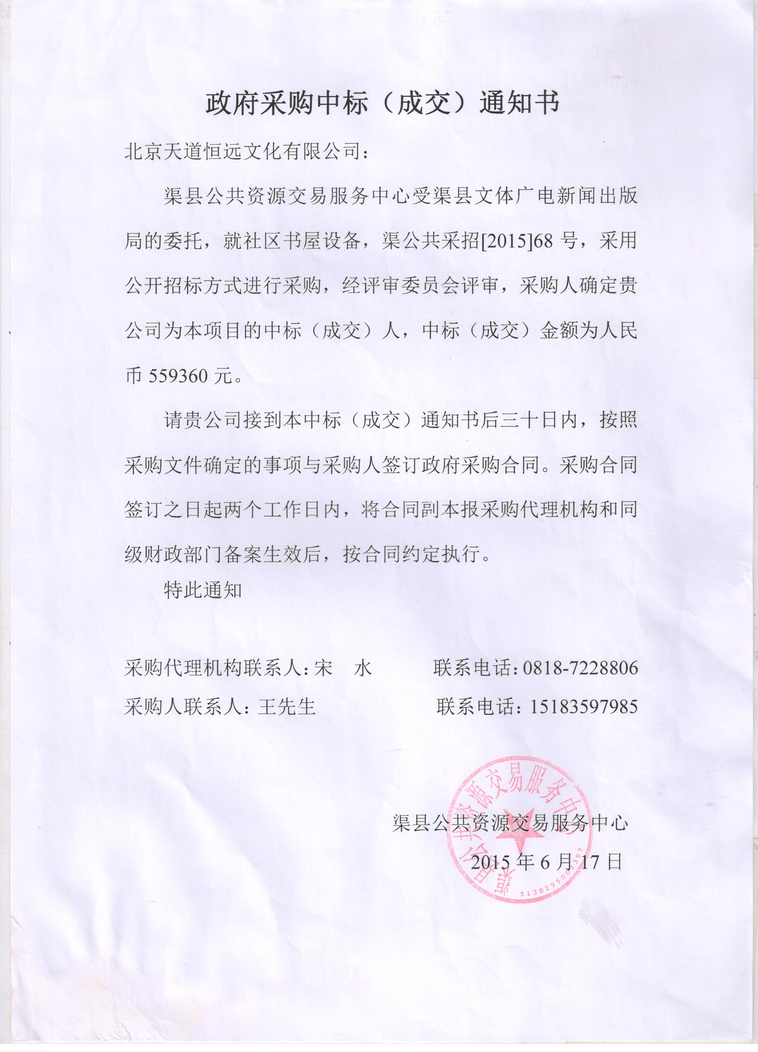 項(xiàng)目編號(hào):渠公共采招【2015】68號(hào)