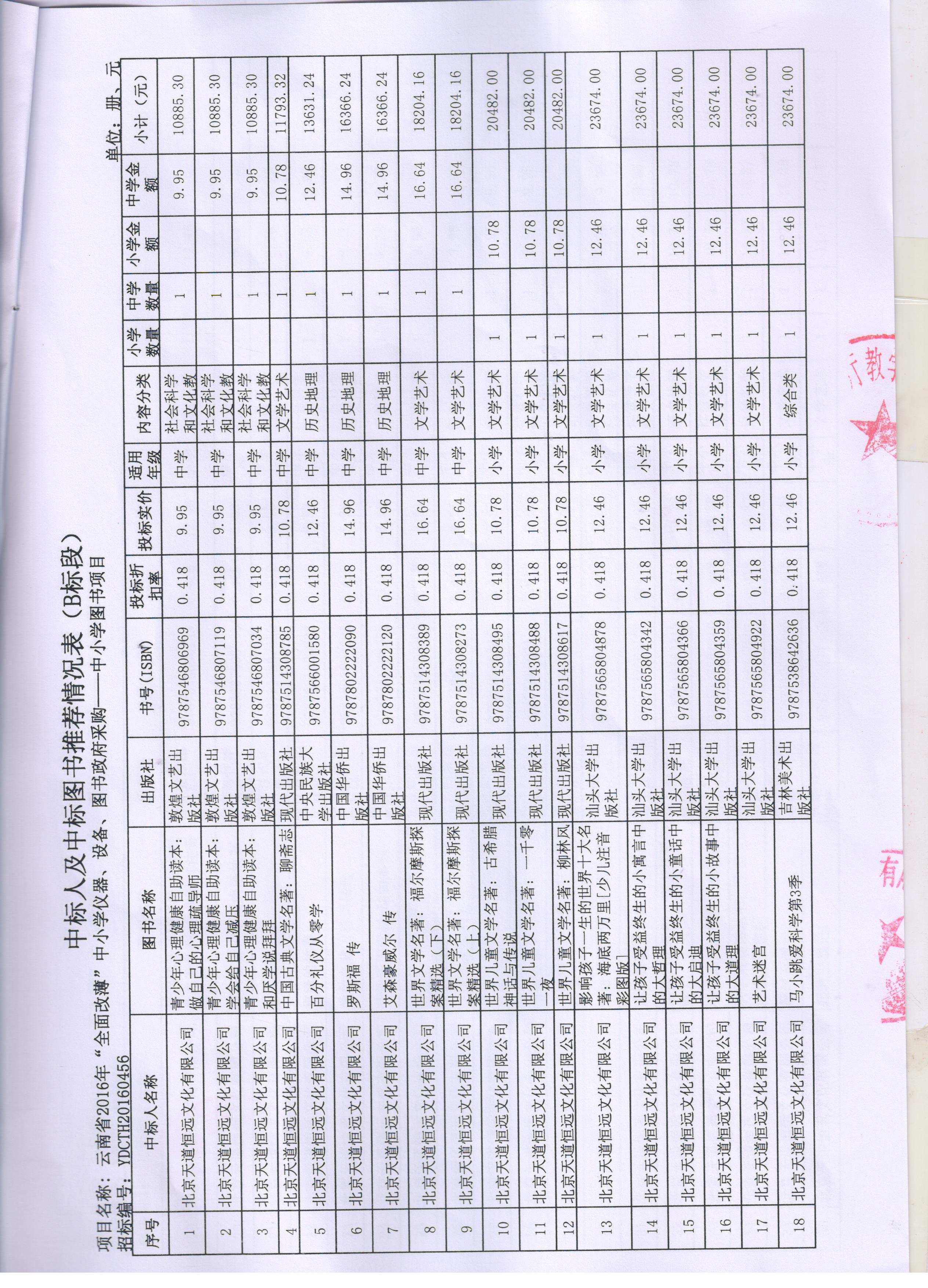 項(xiàng)目名稱:云南省2016年“全面改薄”中小學(xué)儀器、設(shè)備、圖書(shū)政府采購(gòu)--中小學(xué)圖書(shū)項(xiàng)目